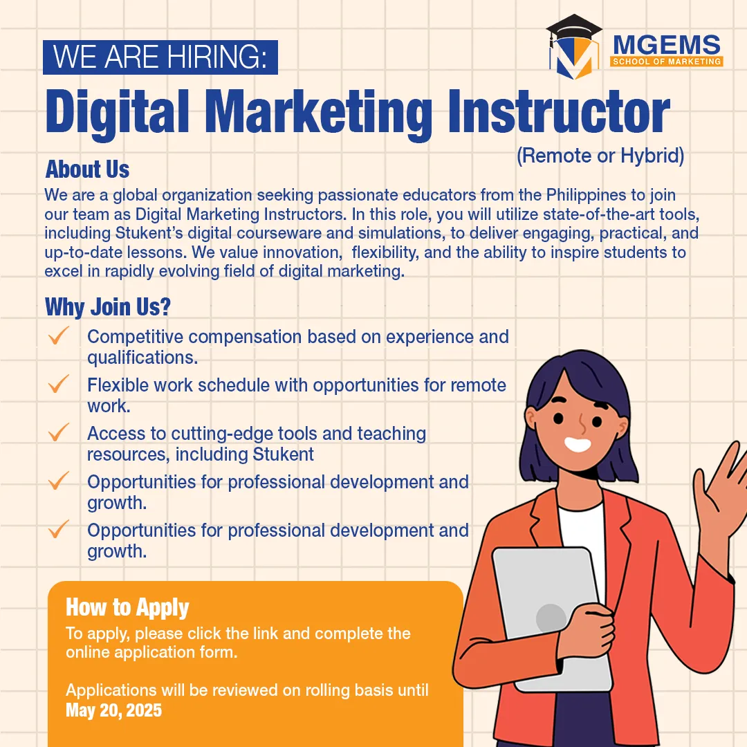 If you're passionate about teaching and digital marketing, this is your opportunity to make a real impact. You’ll guide students through dynamic, real-world learning experiences using industry-leading tools like Stukent digital courseware and simulations.